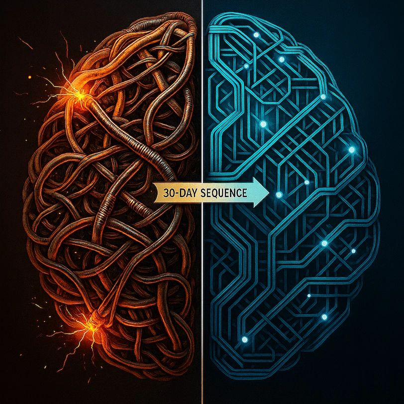 It’s a 30-day, 5-minute sequence completed before bed that intervenes at the exact moment your nervous system updates itself.
